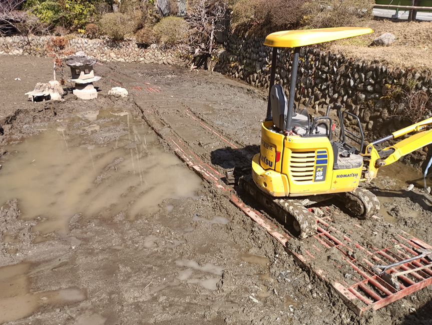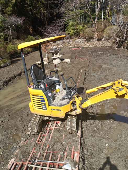 | 2026年3月4日埼玉県にある大変由緒ある宝登山神社です。「池」たまりにたまったへ泥をユンボを使って抄い出す。ロードマット大活躍 | |||