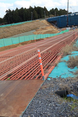 | H25年1月 群馬県前橋市内 県営前橋ゴルフ場 工事用仮設の盛り土道路が崩れない様に砕石等抑える効果もあり | ||